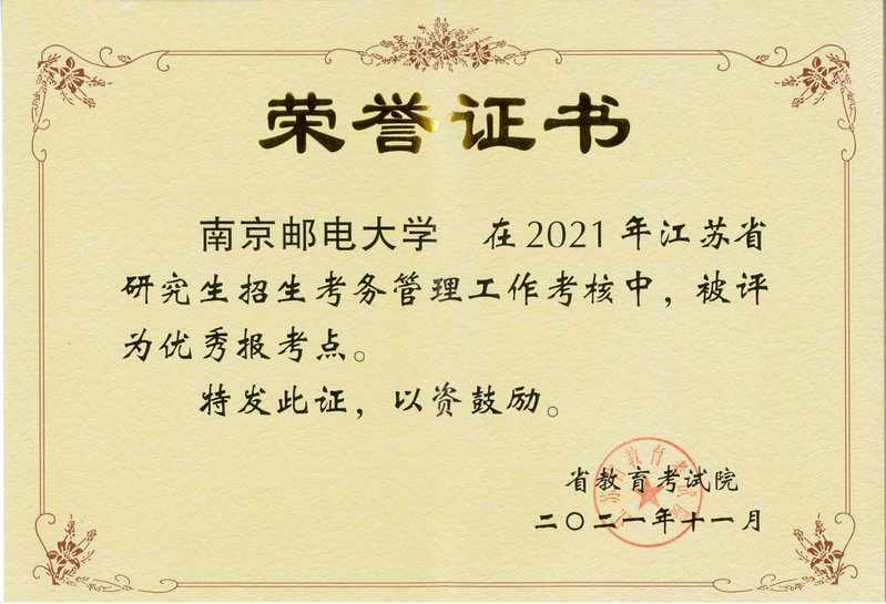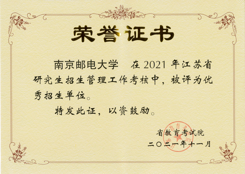 近日,江苏省教育考试院召开会议,对2021年全省研究生招生工作进行了总结表彰,我校荣获“江苏省优秀招生单位”和“江苏省优秀报考点”荣誉称号。这是我校连续十年获评江苏省优秀研究生招生单位,同时也是我校首次作为全国研究生考试报考点即获评省优秀报考点。